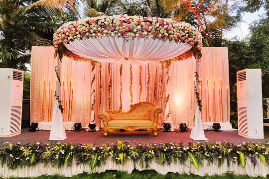 Identify and visit potential venues in Pune that match the couple's vision and accommodate their guest list comfortably. Design and decorate the venue to enhance the chosen theme, including floral arrangements, lighting, drapery, and other decorative elements.